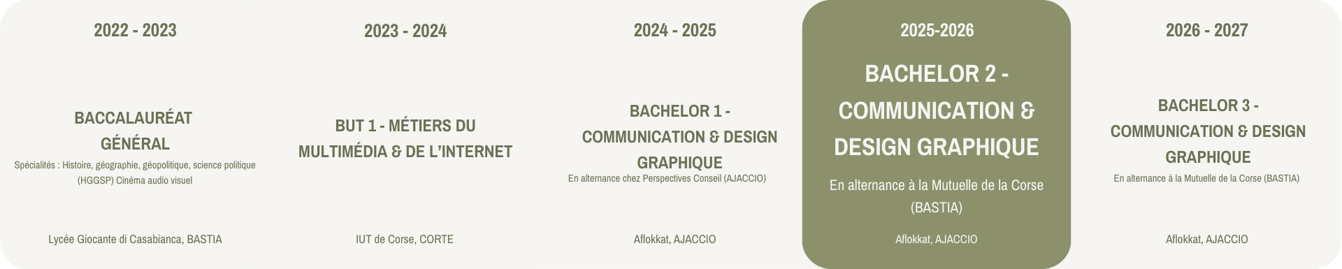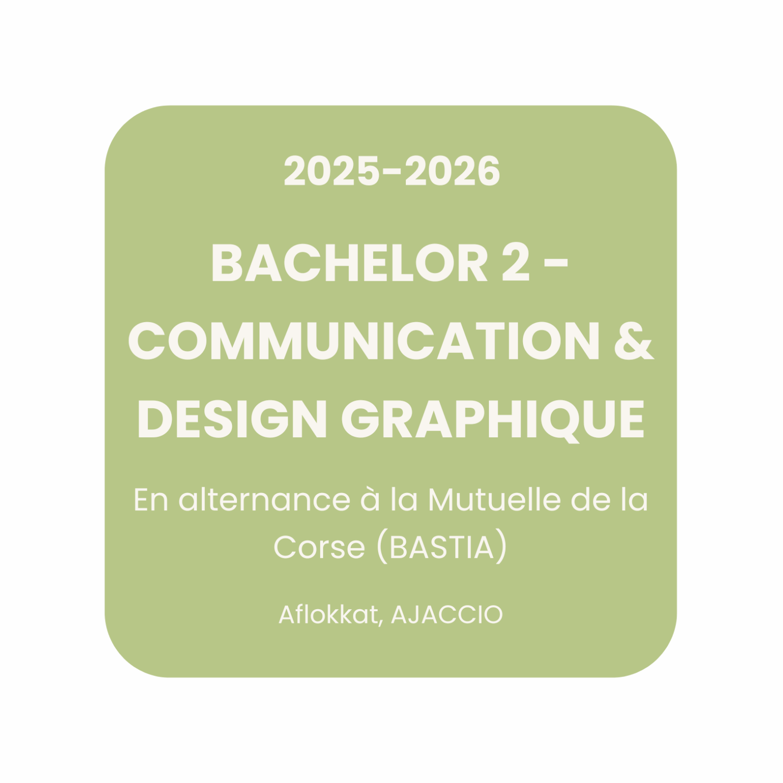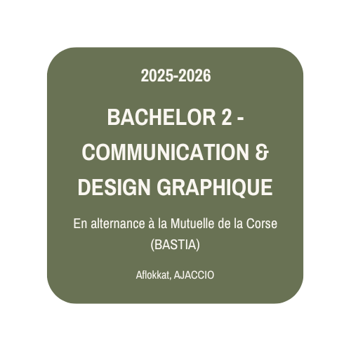 Étudiante en Bachelor Communication & Design Graphique, je suis en alternance depuis septembre à la Mutuelle de la Corse. Passionnée par l’image et la création, j’aime concevoir des univers visuels cohérents qui racontent une histoire et valorisent chaque projet.