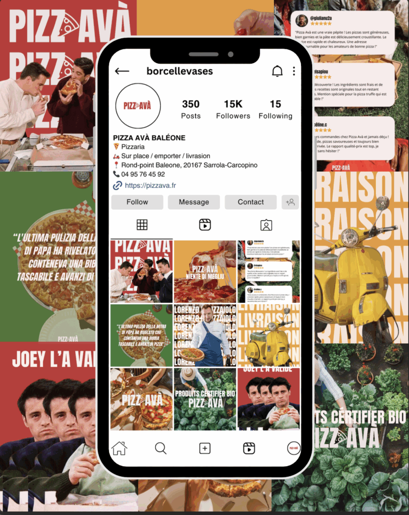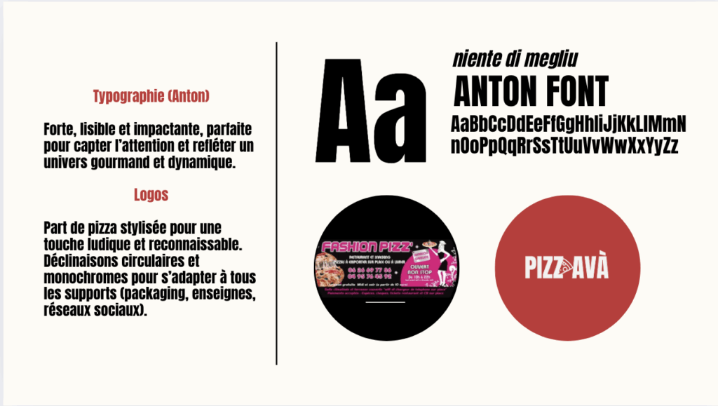 J’ai repensé l’image du restaurant Fashion Pizz’ pour créer Pizz’Avà, une identité plus moderne, authentique et conviviale, inspirée de la culture corse (“Avà” signifie “maintenant”). La nouvelle charte graphique mêle chaleur, gourmandise et simplicité, avec des couleurs naturelles et un logo typographique épuré symbolisant le partage. Pizz’Avà, c’est la pizza d’aujourd’hui : authentique, locale et pleine de saveurs. 🍕