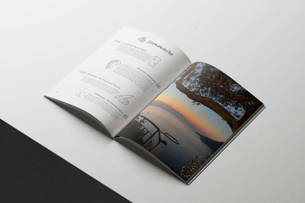 J’ai réalisé un magazine éditorial consacré à La Sassa, un lieu emblématique du Cap Corse, en mettant en avant son histoire, sa cuisine et son identité.