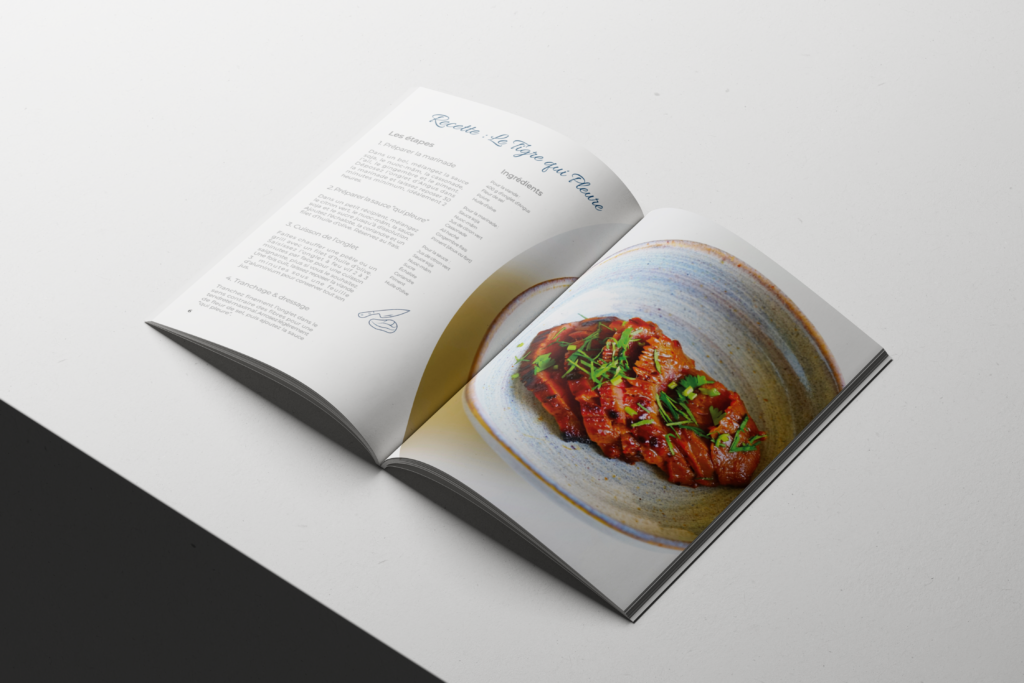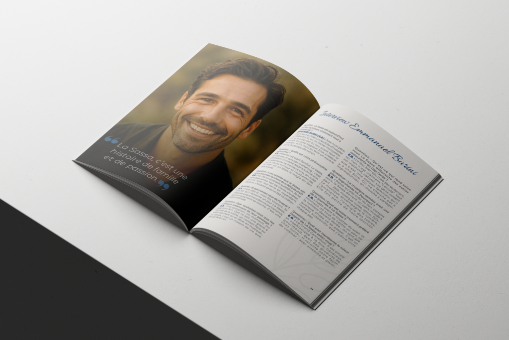 Le magazine se compose de plusieurs doubles pages : une page de garde posant l’univers du projet, une double page sommaire, une double page sur l’histoire de La Sassa, une double page recette autour du plat Le Tigre qui Pleure, une double page présentant les plats signatures, ainsi qu’une double page interview d’Emmanuel Burini, le propriétaire du restaurant.